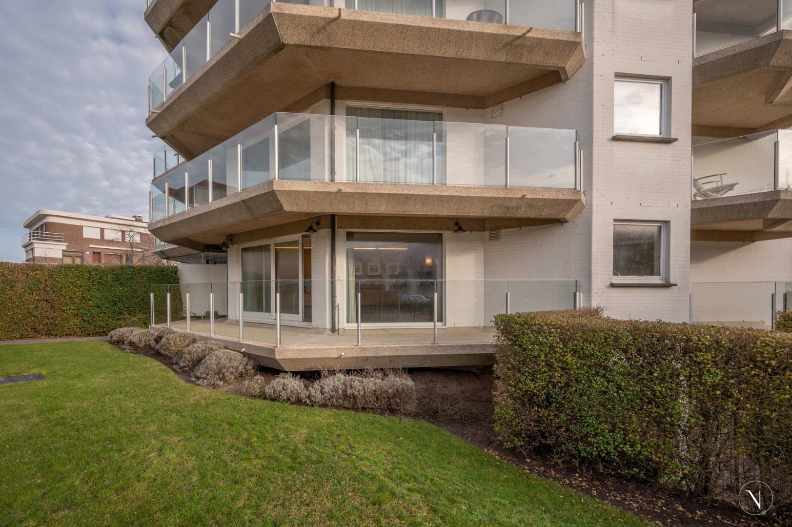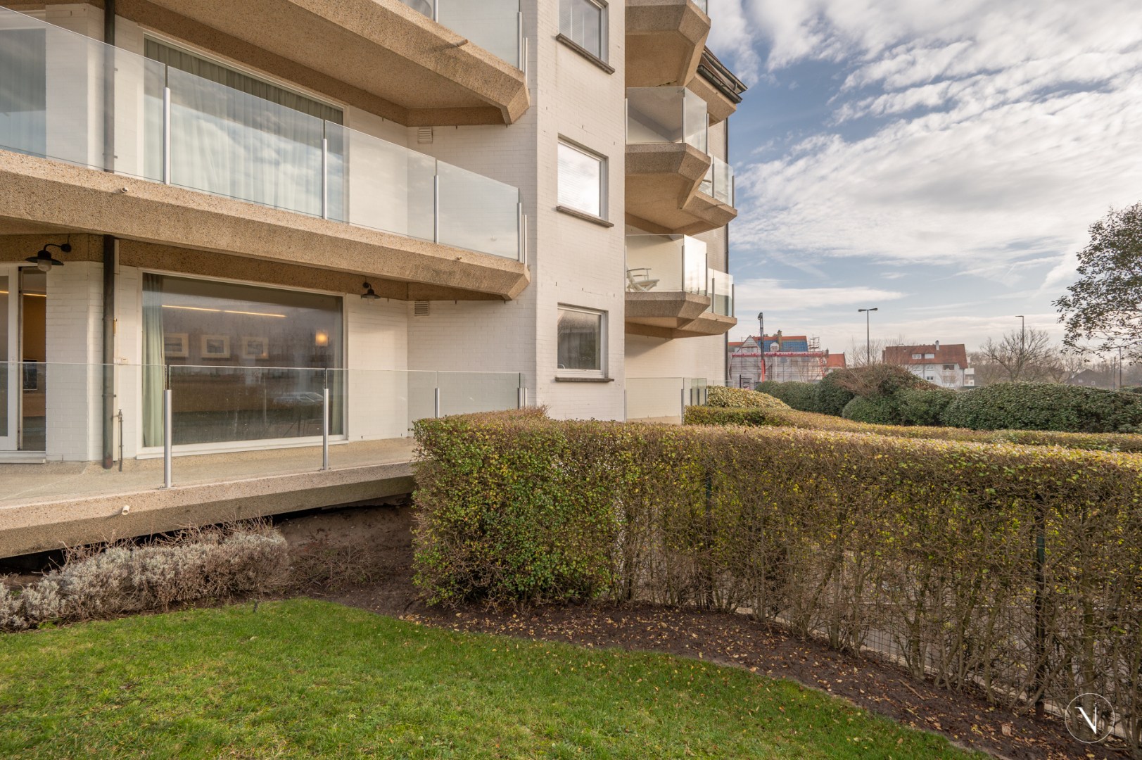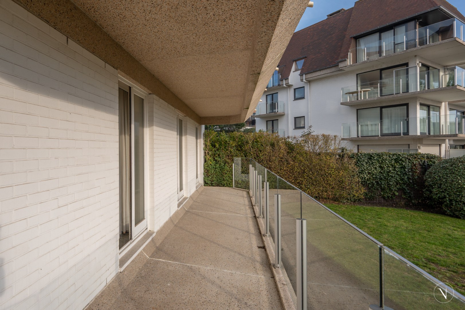 In een standingvolle en uiterst rustige residentie in het hart van het Zoute, op enkele stappen van de zee, de Wandeldijk en de Royal Zoute Tennis Club, bevindt zich dit ruime gelijkvloerse hoekappartement van ca. 180 m².