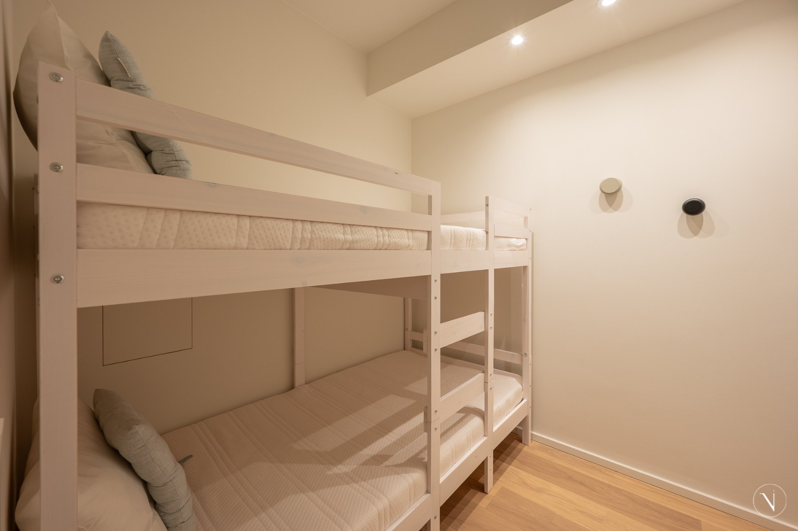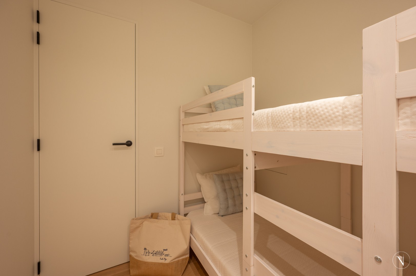Tweede slaapkamer met dubbelbed en maatkasten