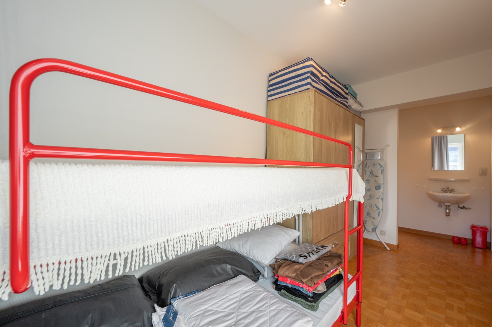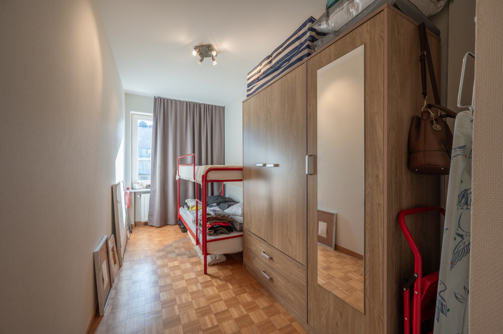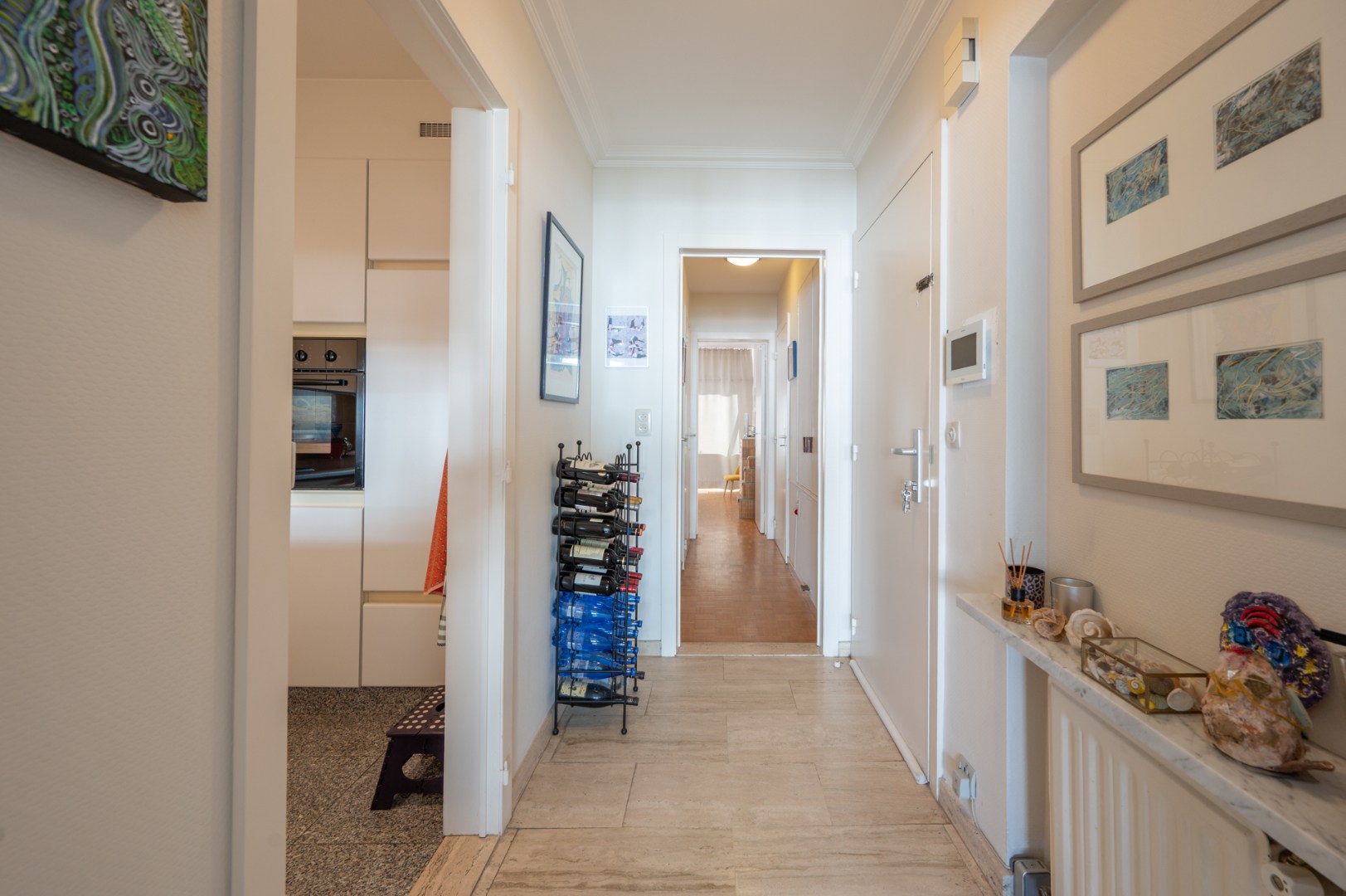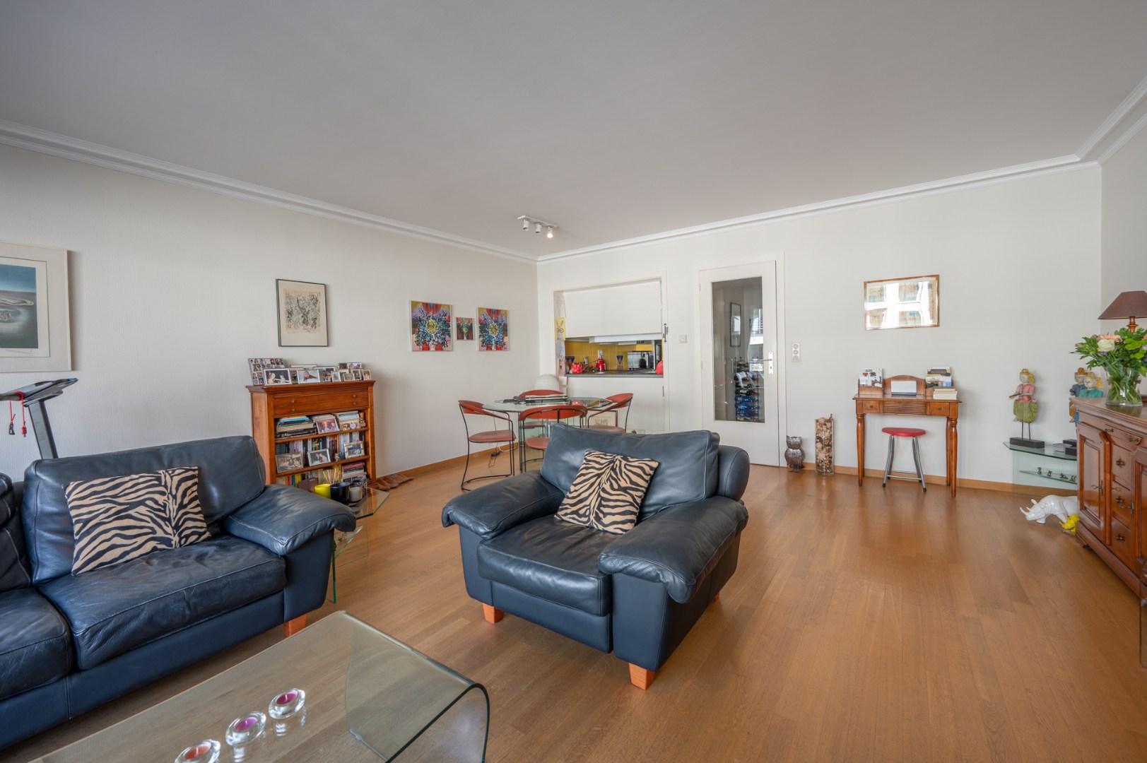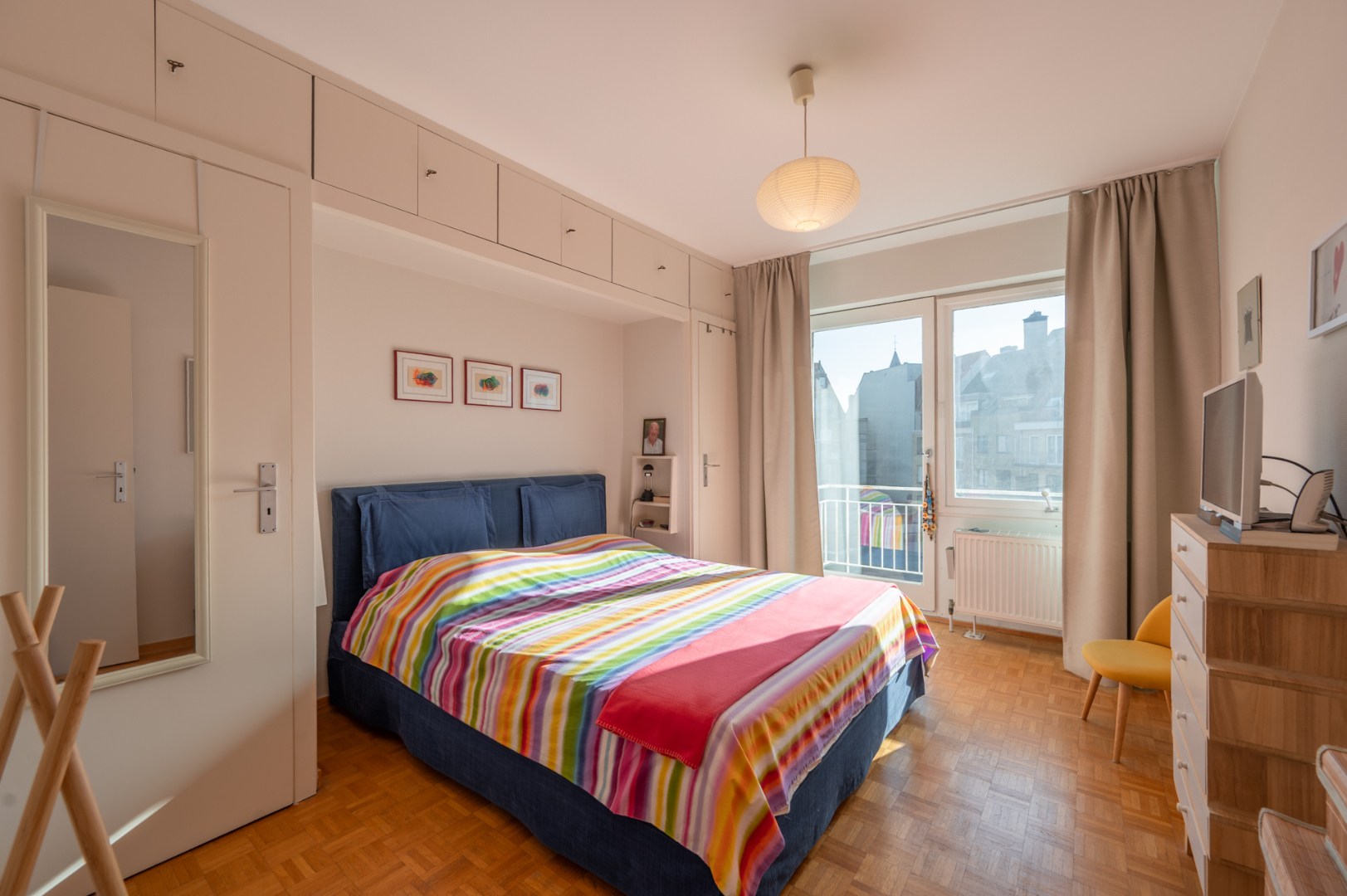 De indeling is functioneel en de lichtrijke woonkamer is een absolute troef, met een aangename inval van de namiddagzon die zorgt voor een warme sfeer. Hoewel het appartement renovatiewerken vereist, vormt het een ideale basis om volledig naar eigen smaak in te richten.