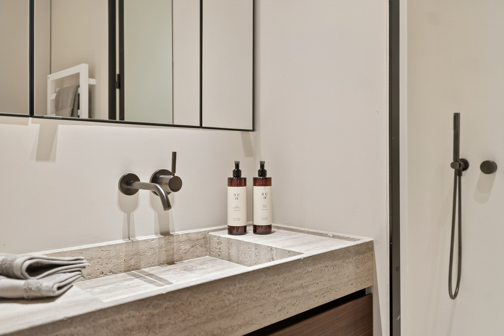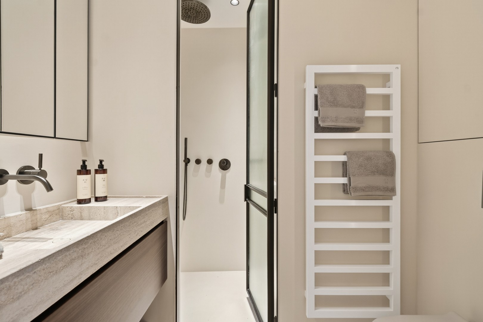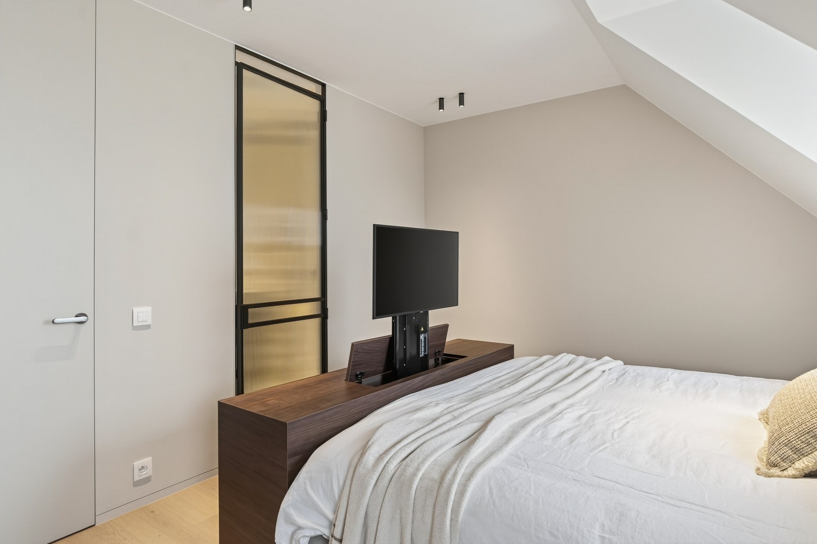 De masterbedroom beschikt over een ensuite badkamer, terwijl slaapkamer 2 en 3 een badkamer delen. De Skyframe ramen, natuurstenen accenten, ingefreesde details en harmonie tussen hedendaags en tijdloos design maken van deze penthouse een woonervaring die zelden op de markt komt.
