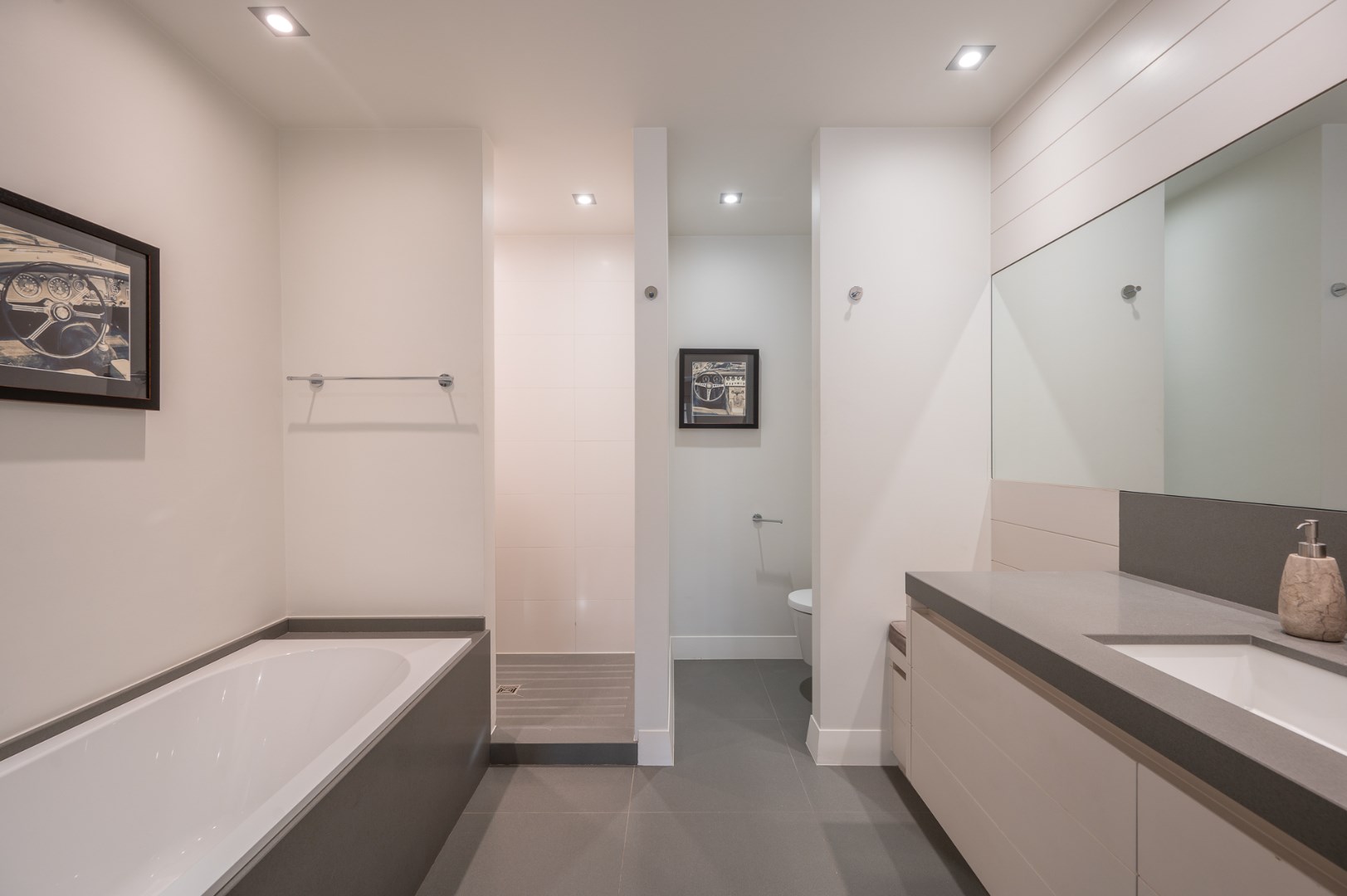 Op de mezzanineverdieping vindt u drie stijlvolle slaapkamers, elk met ingemaakte kasten en een eigen badkamer. De master suite beschikt over een dressing en een luxueuze ensuite badkamer met inloopdouche, ligbad en toilet.