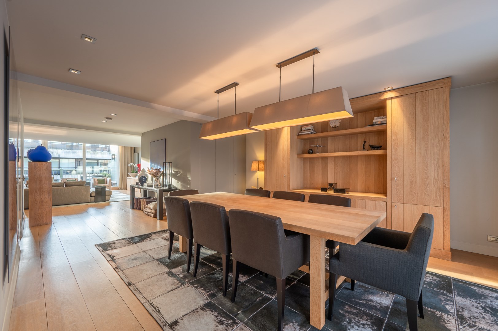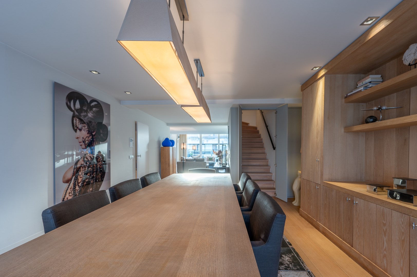Open leefruimte met hoge plafonds en luxueuze afwerking