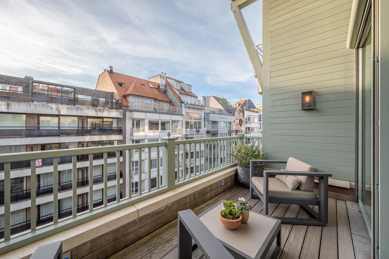Zuidgericht terras met overvloedig zonlicht en zijdelings zeezicht